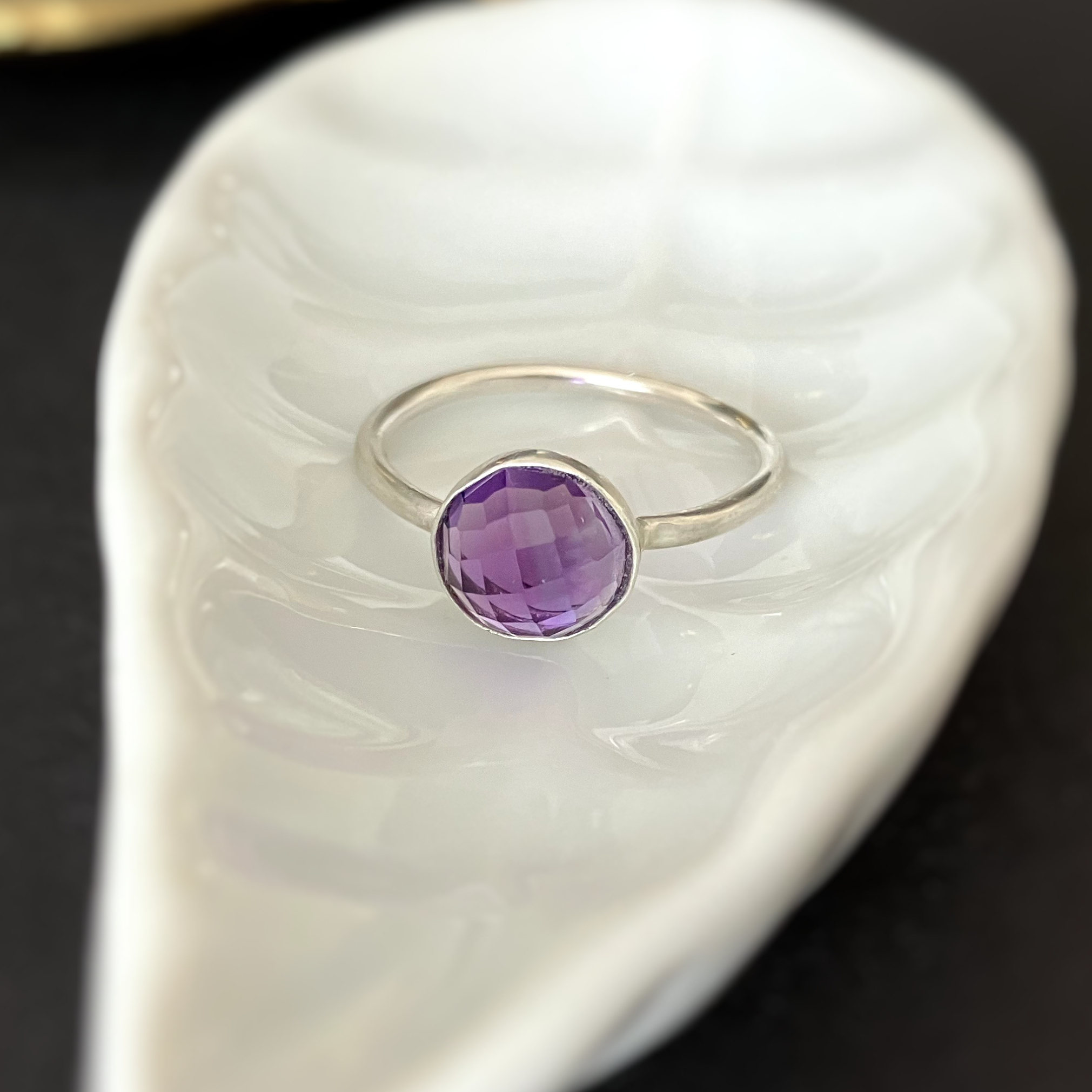 宝石のカットがキラキラ輝くローズカットのアメジスト