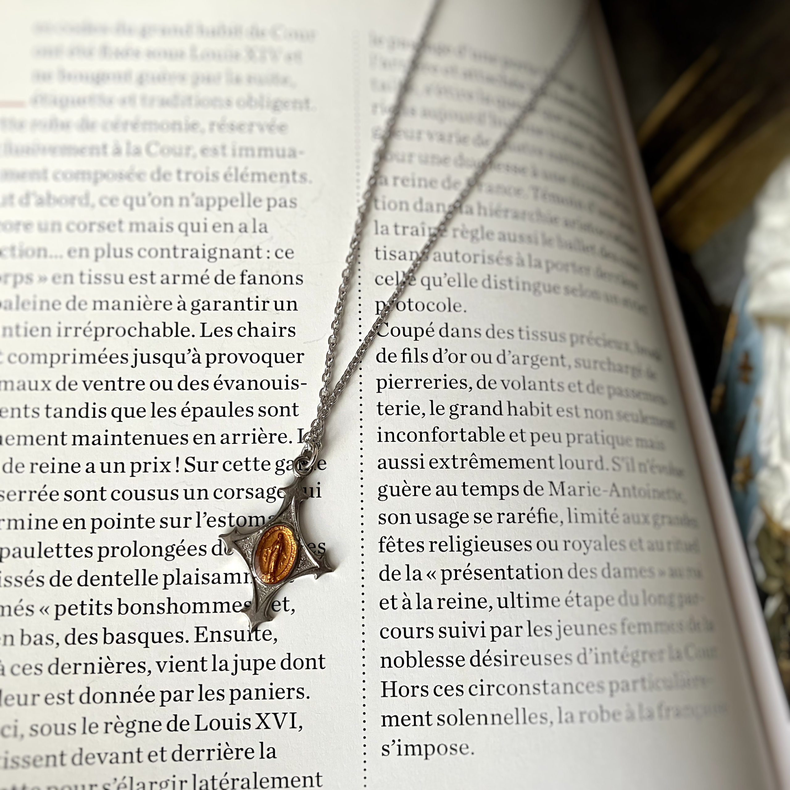 1830年、パリではコレラが大流行していた時代。マリア様からお告げをうけた修道女カタリナ・ラブレはメダイユを作り苦しむ人々へ祈りを込めて配りました。