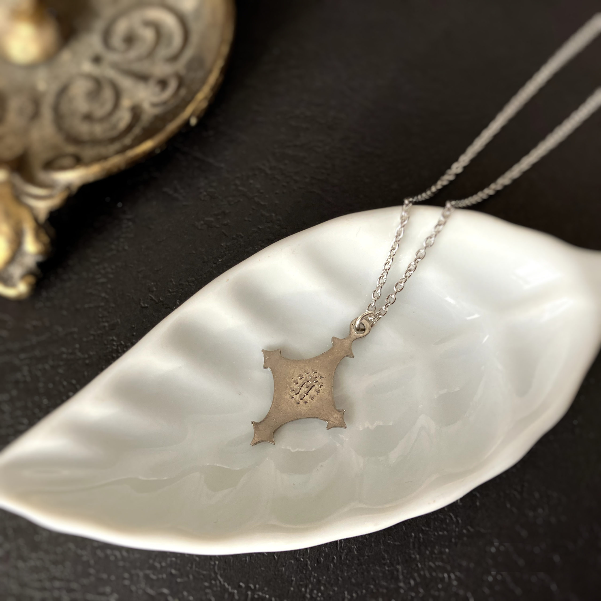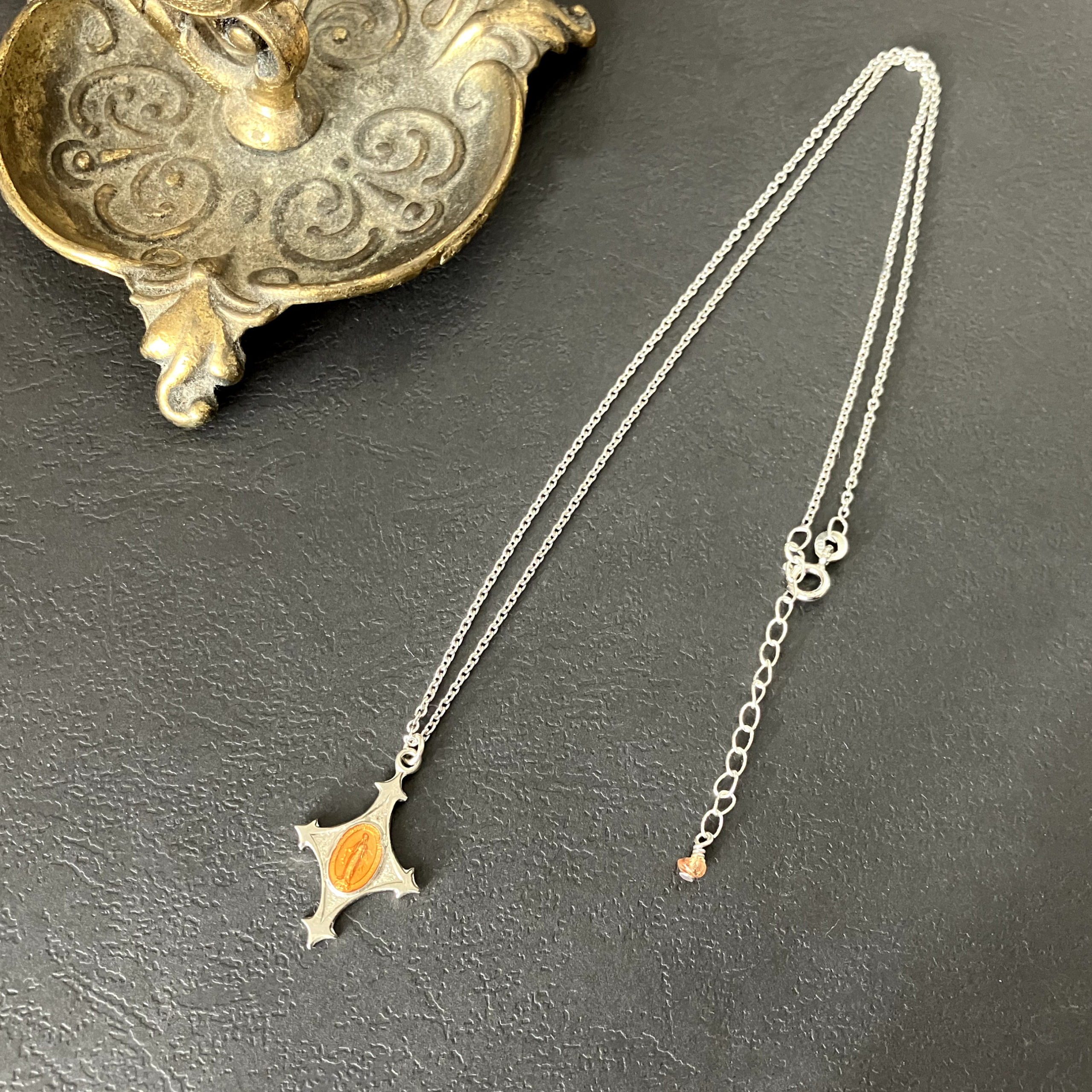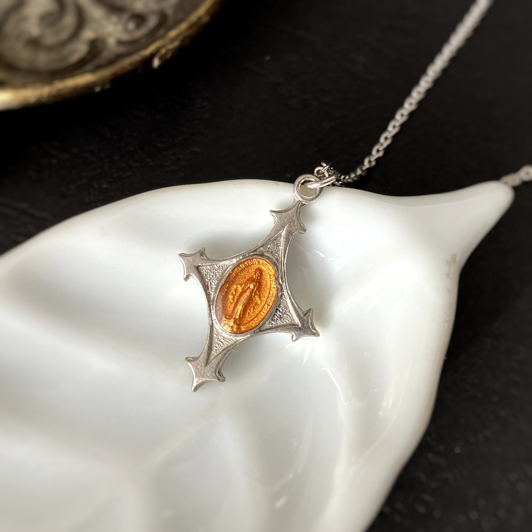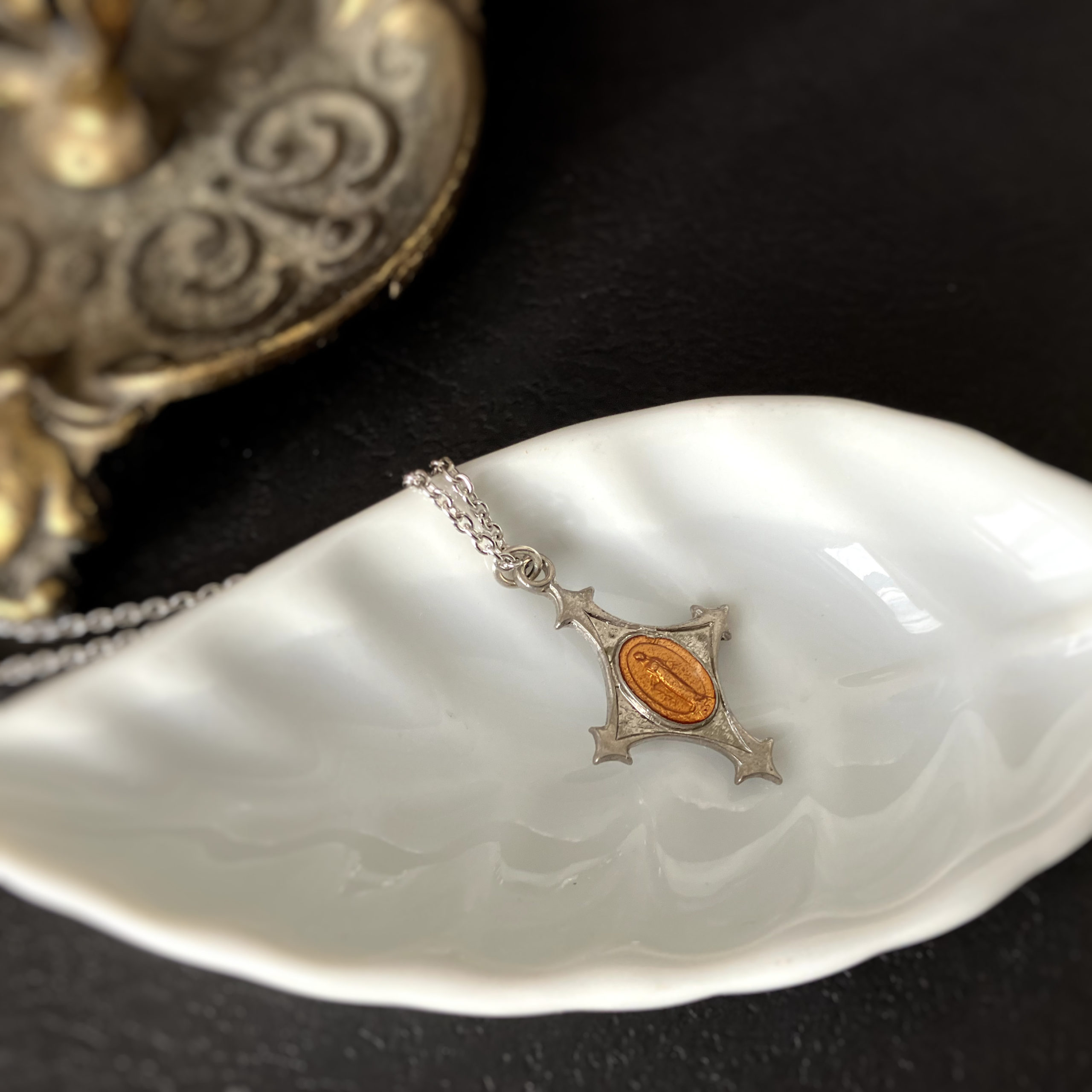 珍しいクロスシェイプとオレンジとも黄色とも言えない色味が味わいあるメダイユです