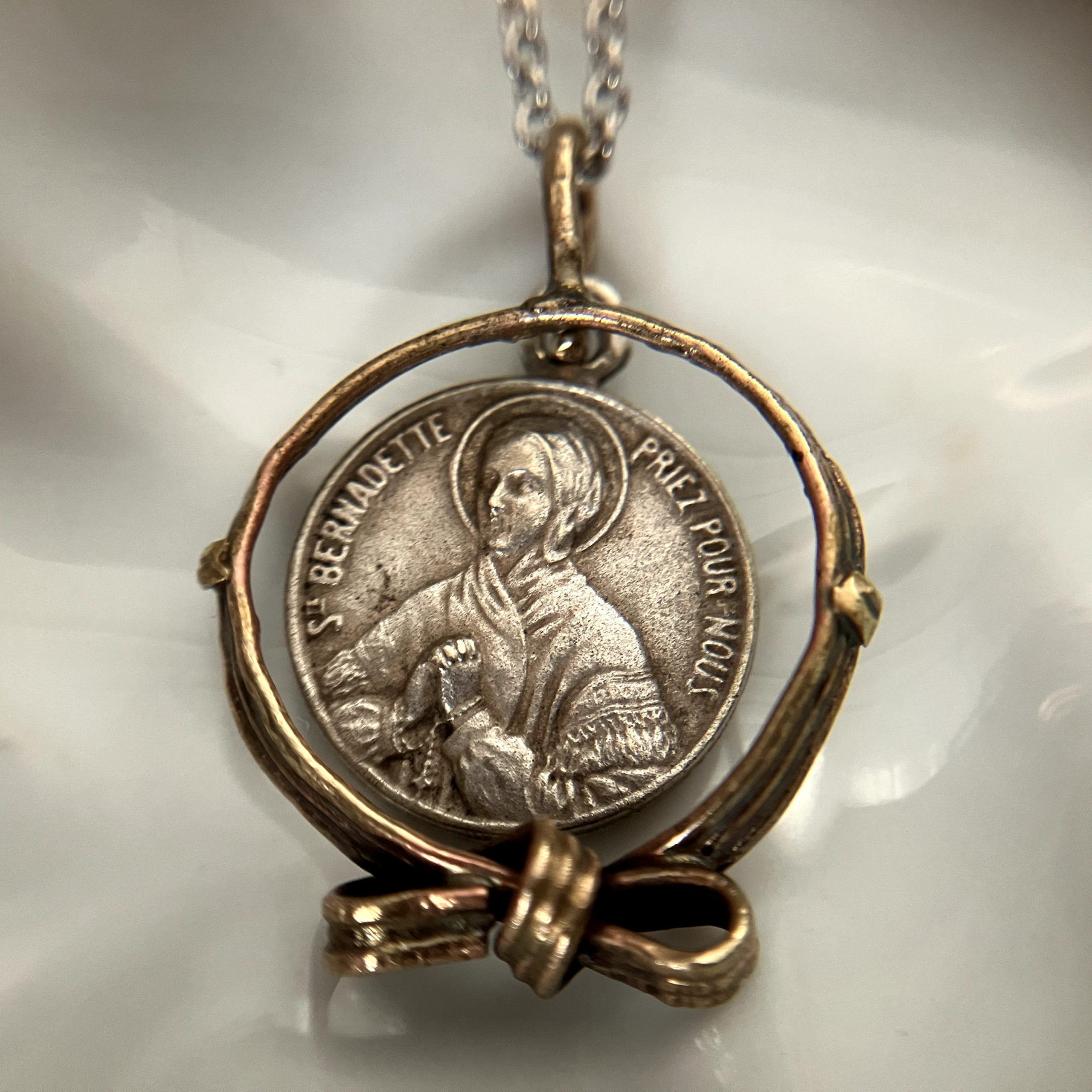 メダイの表面にはルルドの泉でマリア様からお告げを授かったベルナデッタが刻まれ