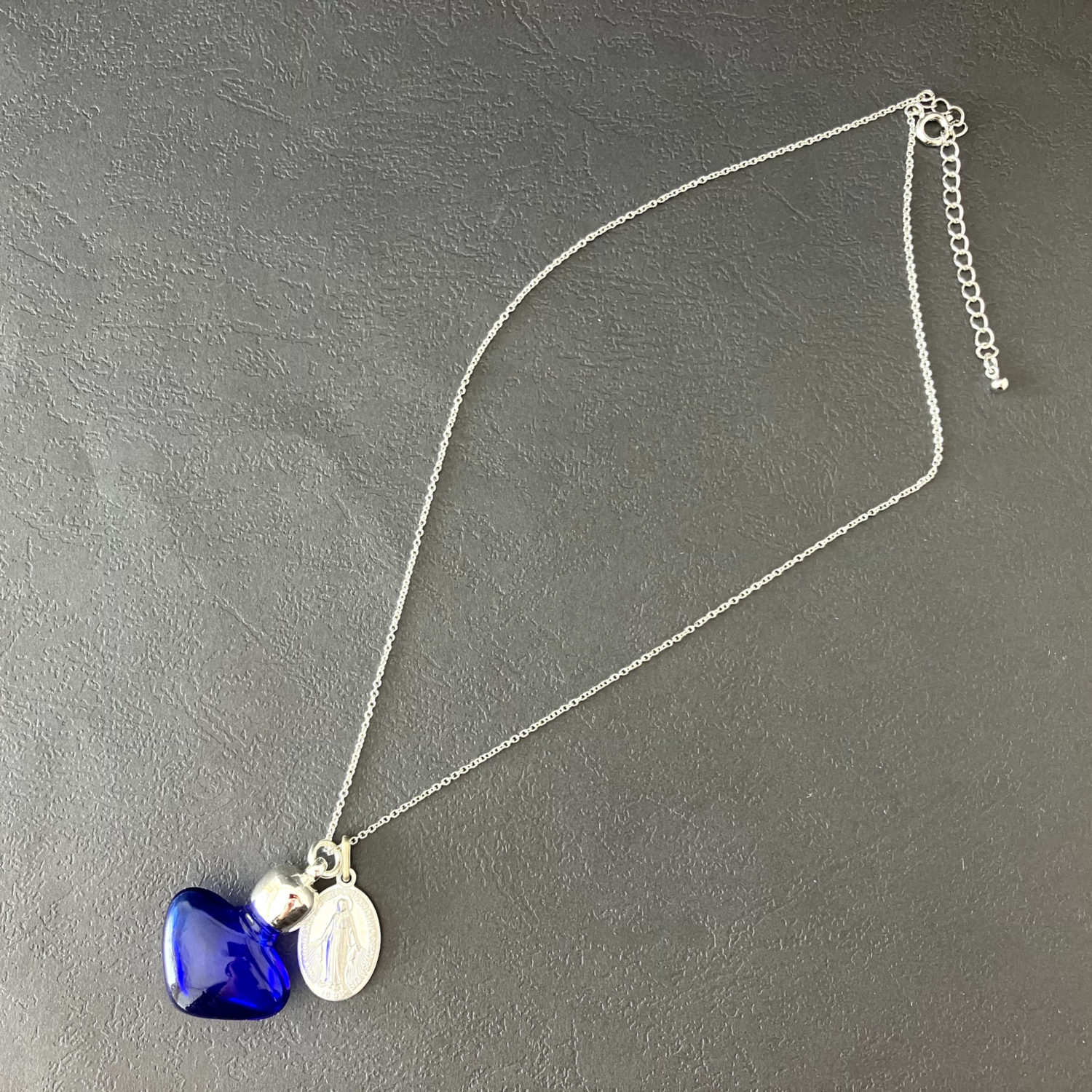 深い色合いのコバルトブルーの香水瓶のネックレス