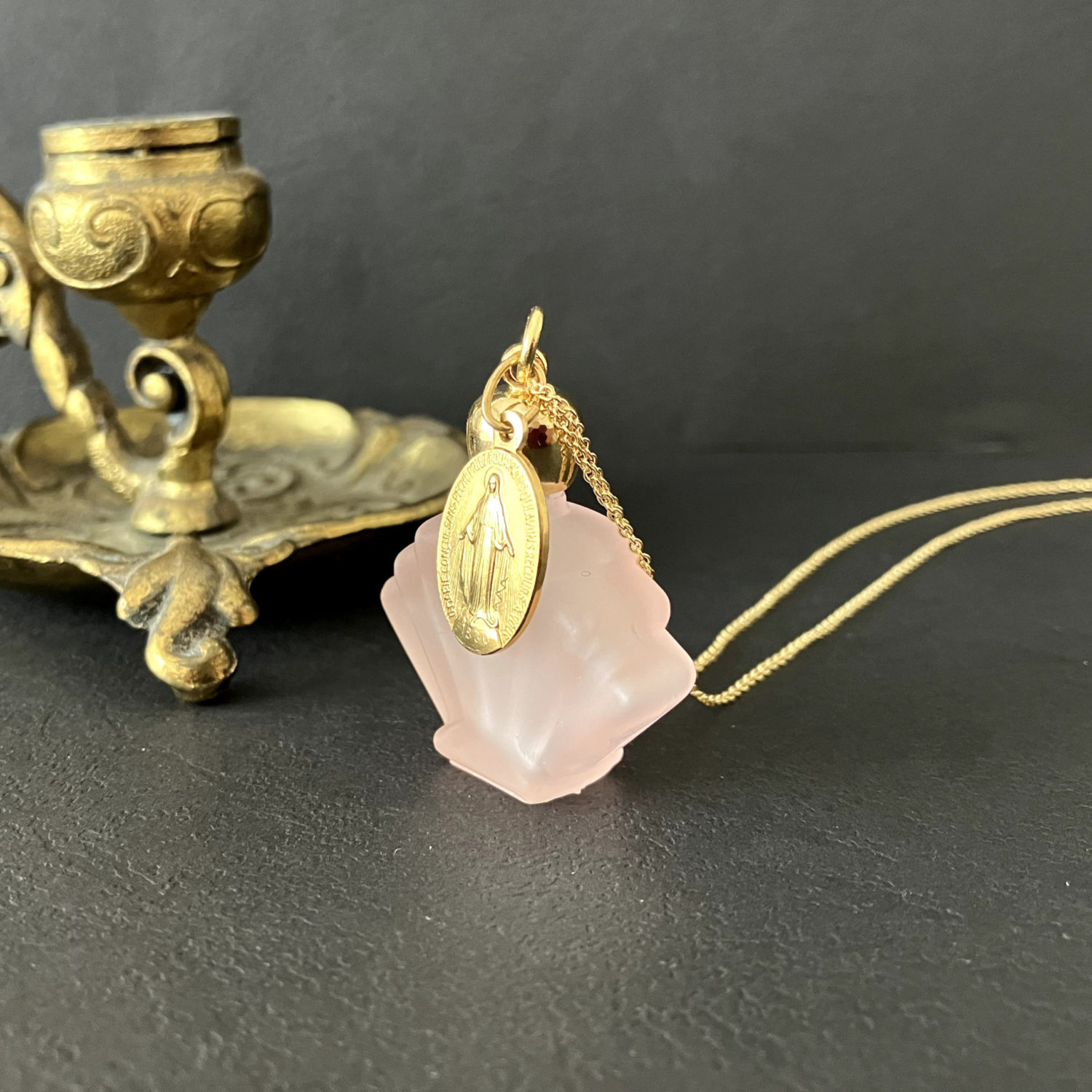 1830年、パリではコレラが大流行していた時代。マリア様からお告げをうけた修道女カタリナ・ラブレはメダイユを作り苦しむ人々へ祈りを込めて配りました。