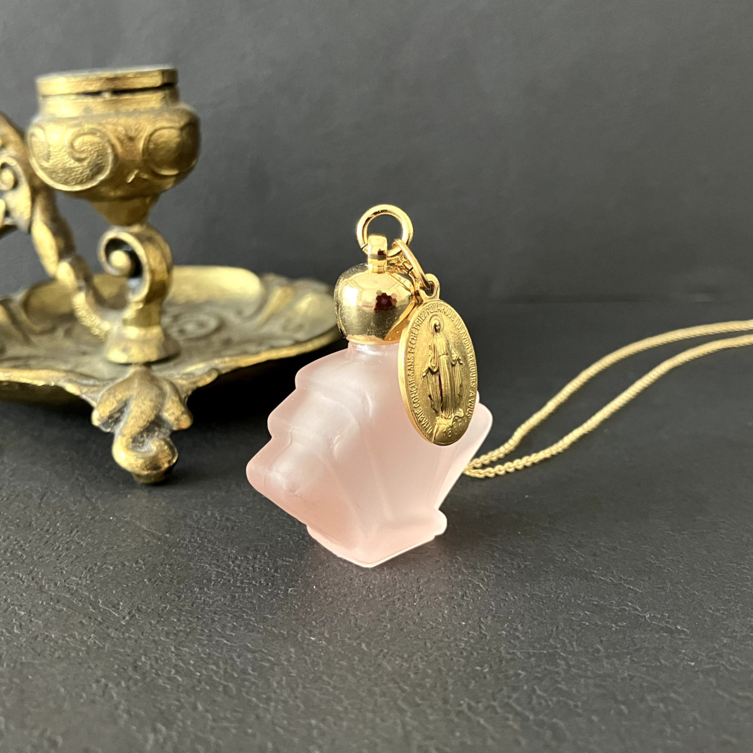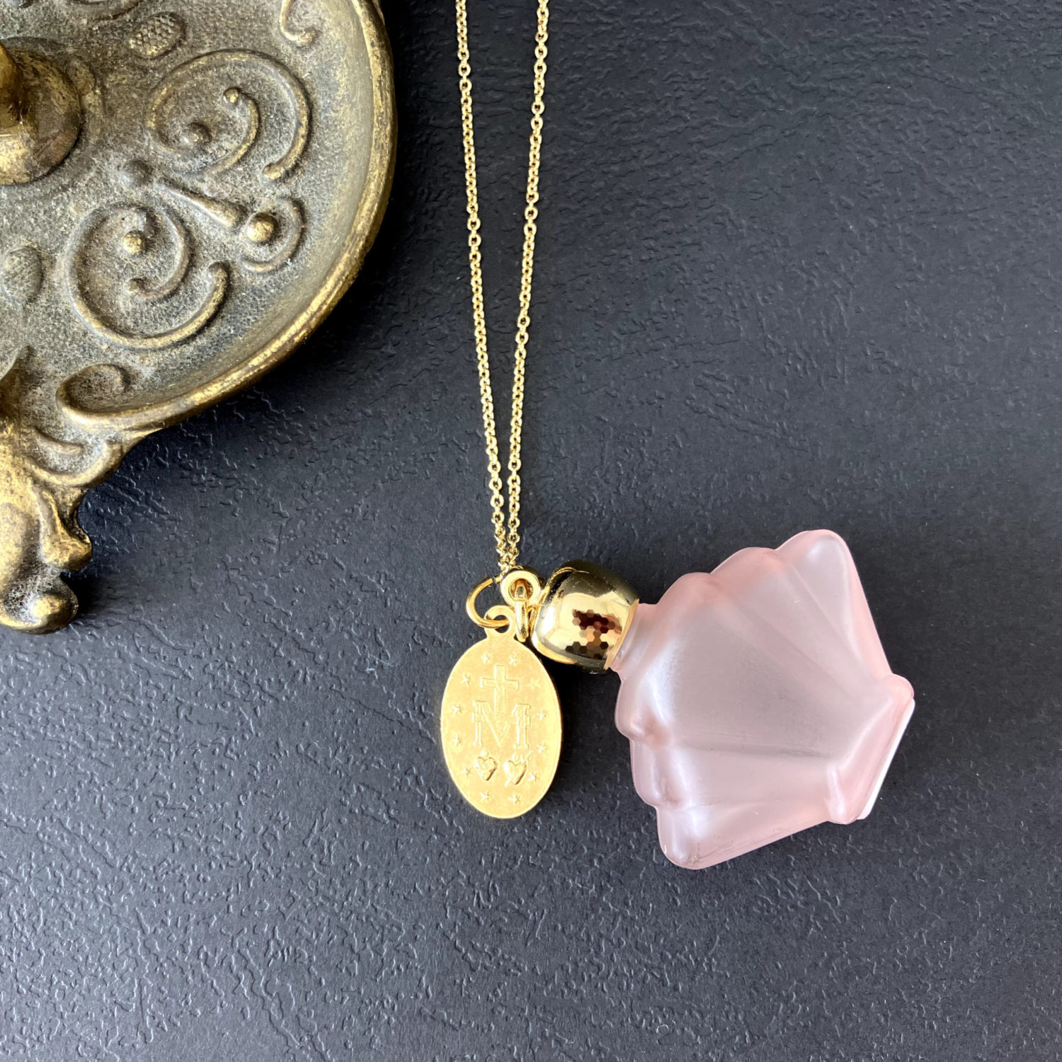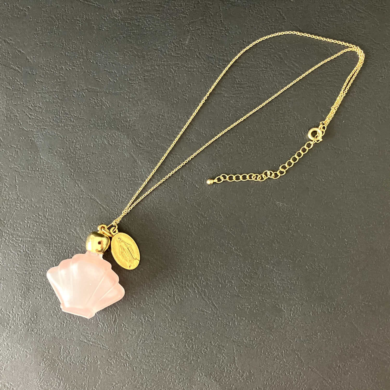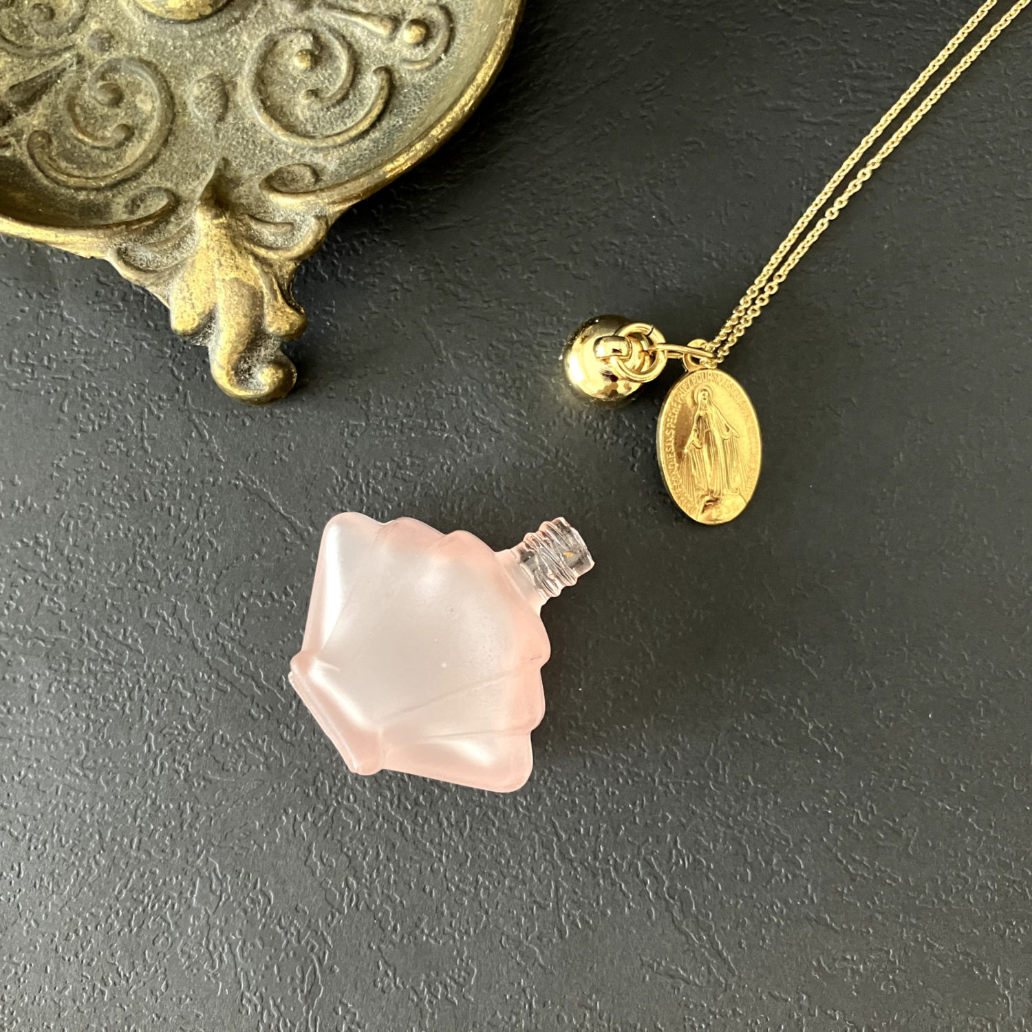 プリンセスカラーにフロスト加工されたピンクの香水瓶