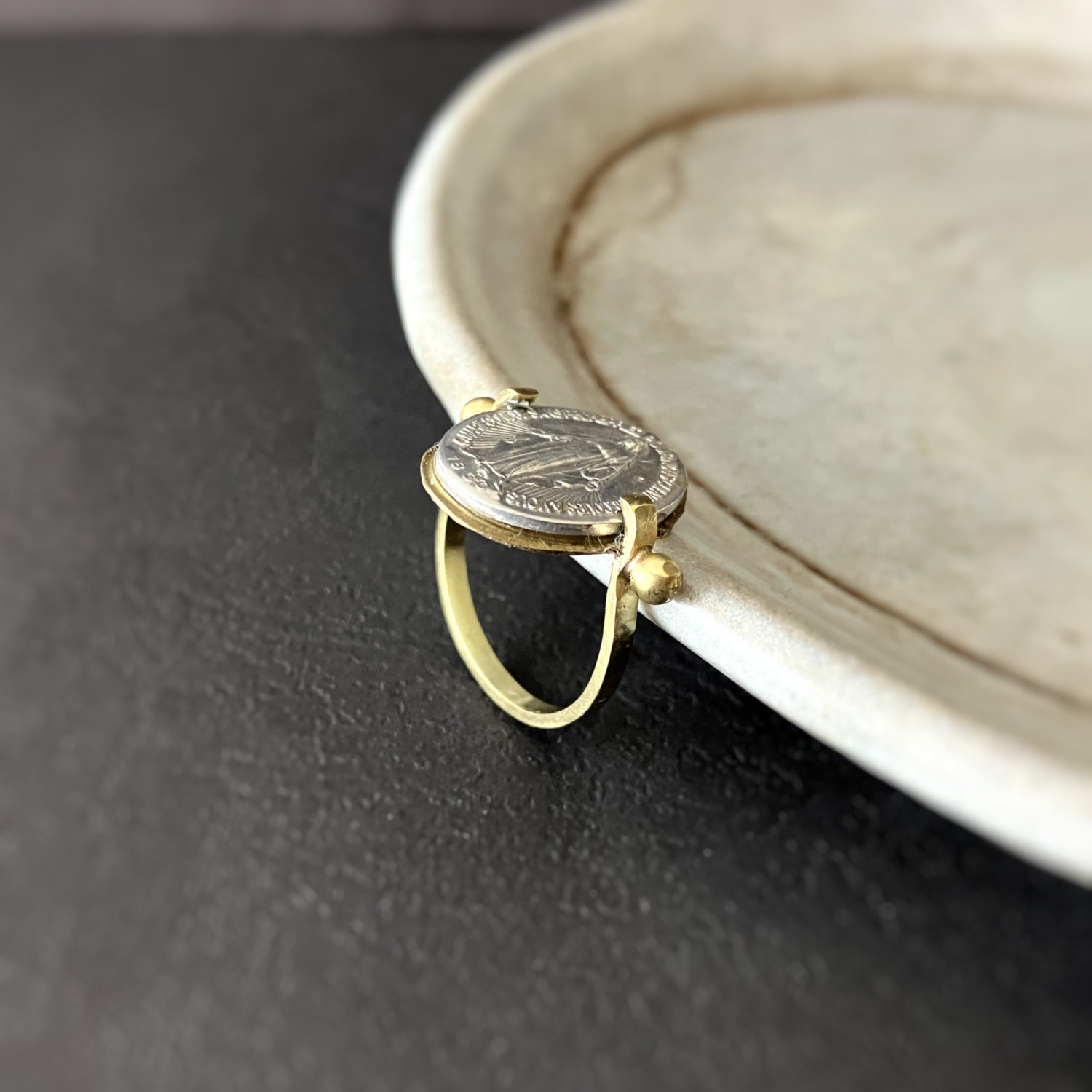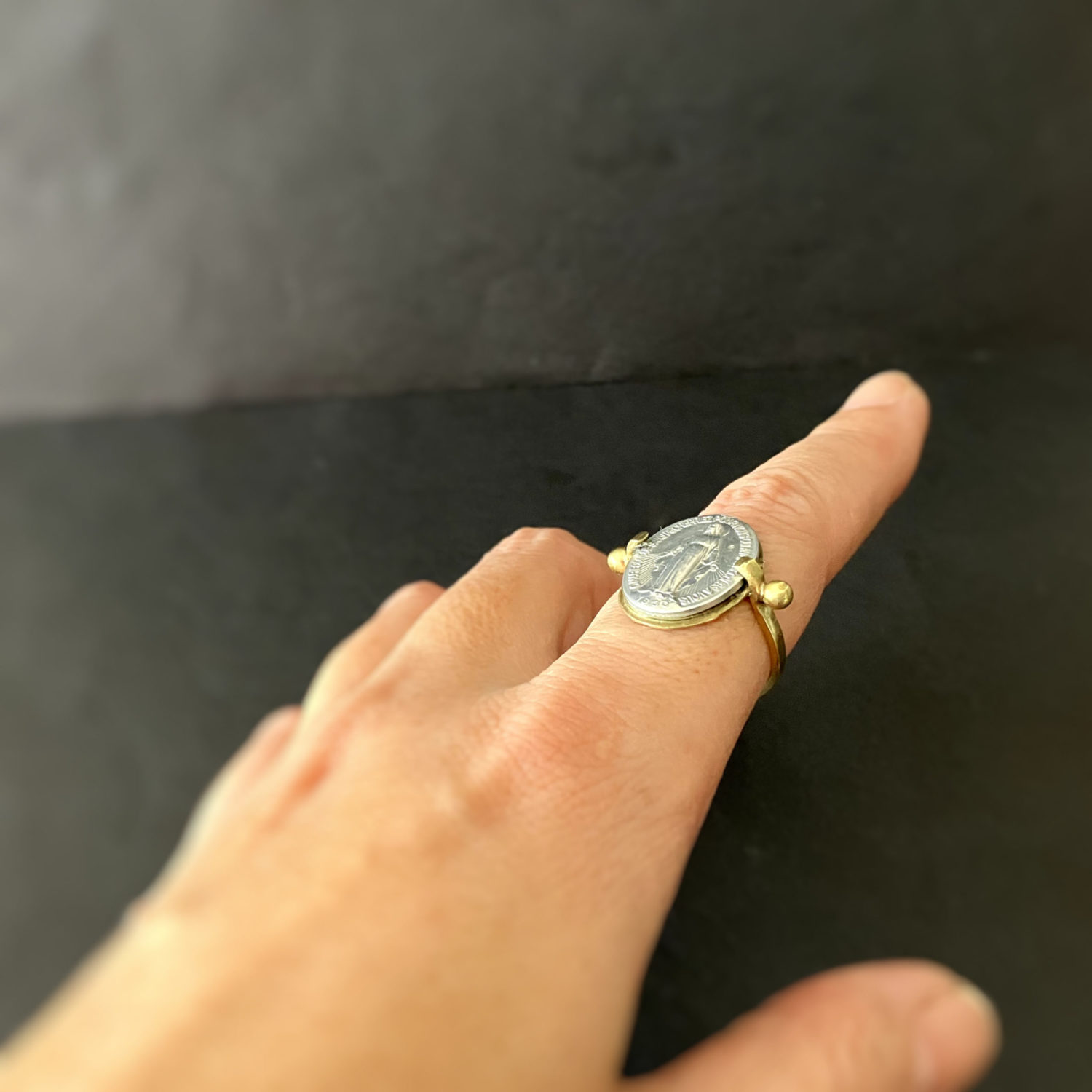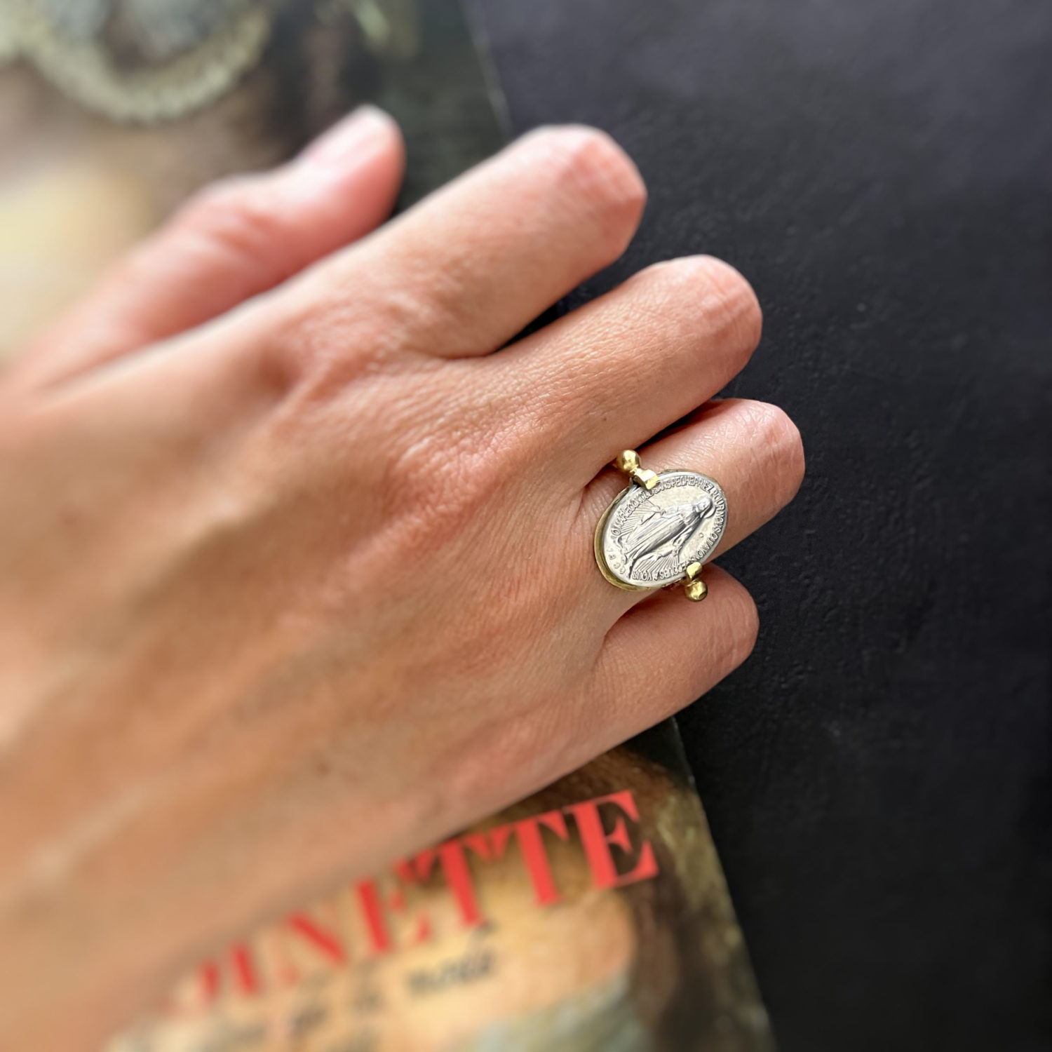 作家自身が直接パリの奇跡のメダイユ教会へ訪れ手にいれたもののみを取り扱っております。 メダイは表と裏に模様がある正真正銘の本物のメダイを使って制作しています